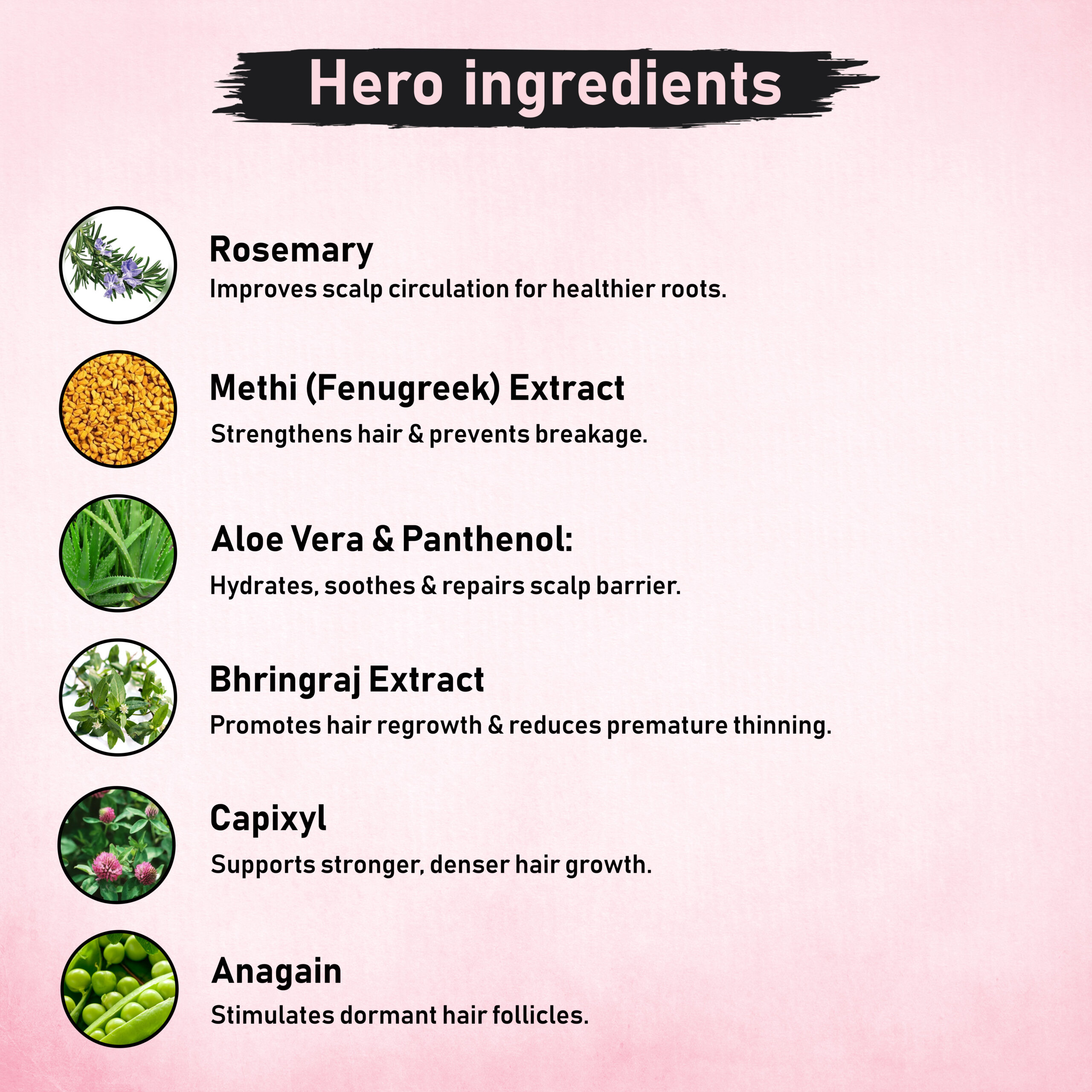 Helps stimulate the scalp, strengthens hair roots, and supports healthy hair growth while protecting against environmental damage.
